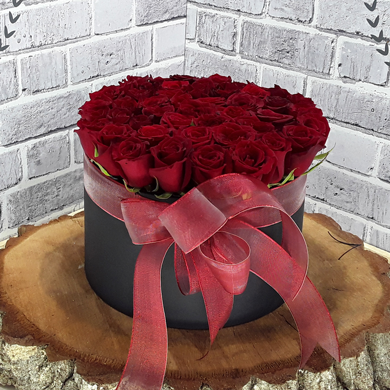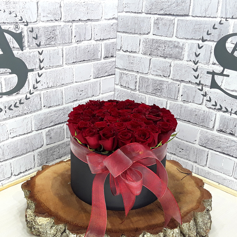 Hediyelik Silindir Kutu İçerisine 41 Adet Kırmızı Güllerler Hazırlanmış Şık Bir Arajman. ''Siz Hayet Edin Biz Gercekleştirelim.''