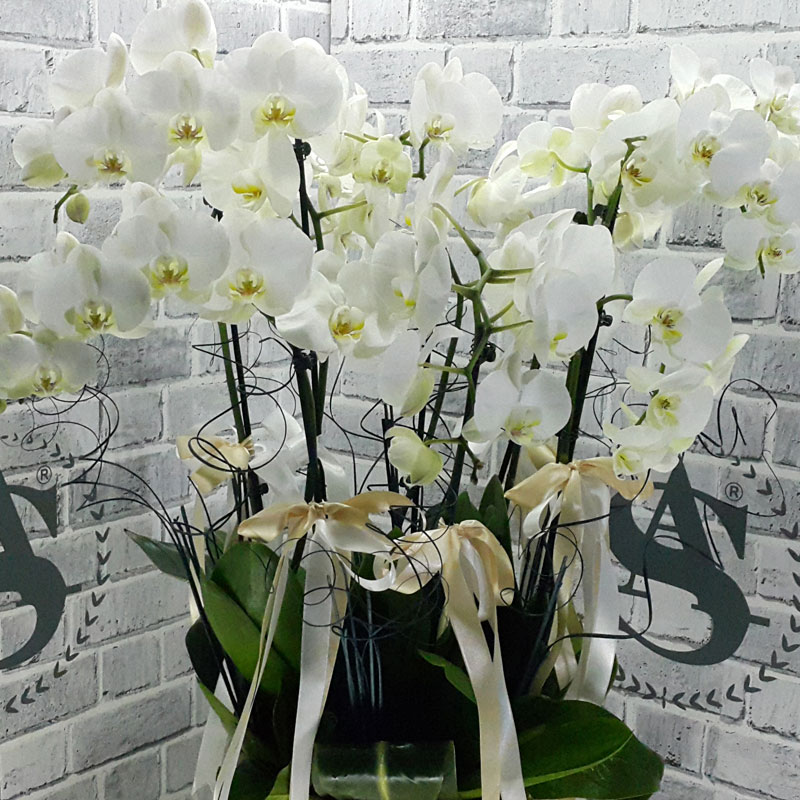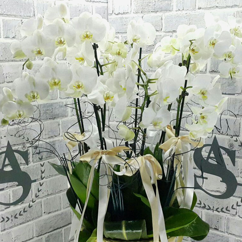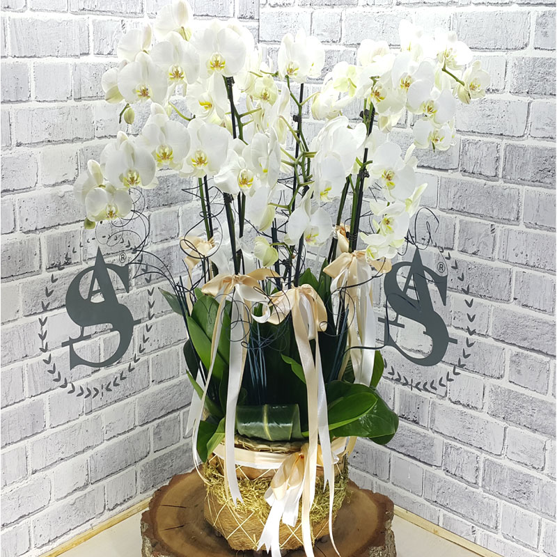 2li 3 adet beyaz orkide ithal sepet içerisine dizany yapılmış şık bir orkide gurubu