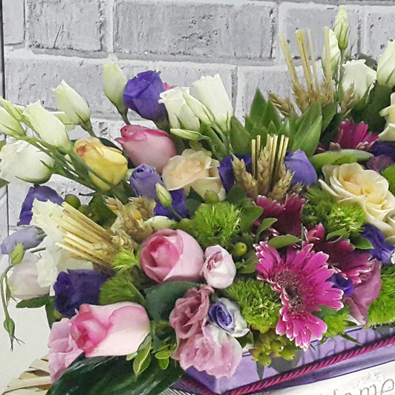 Kitap şeklinde seramik saksıda güller , mevsim çiçeklerinin yeşillikler ve sukkulent ile şık ve zarif çiçek tasarımı.